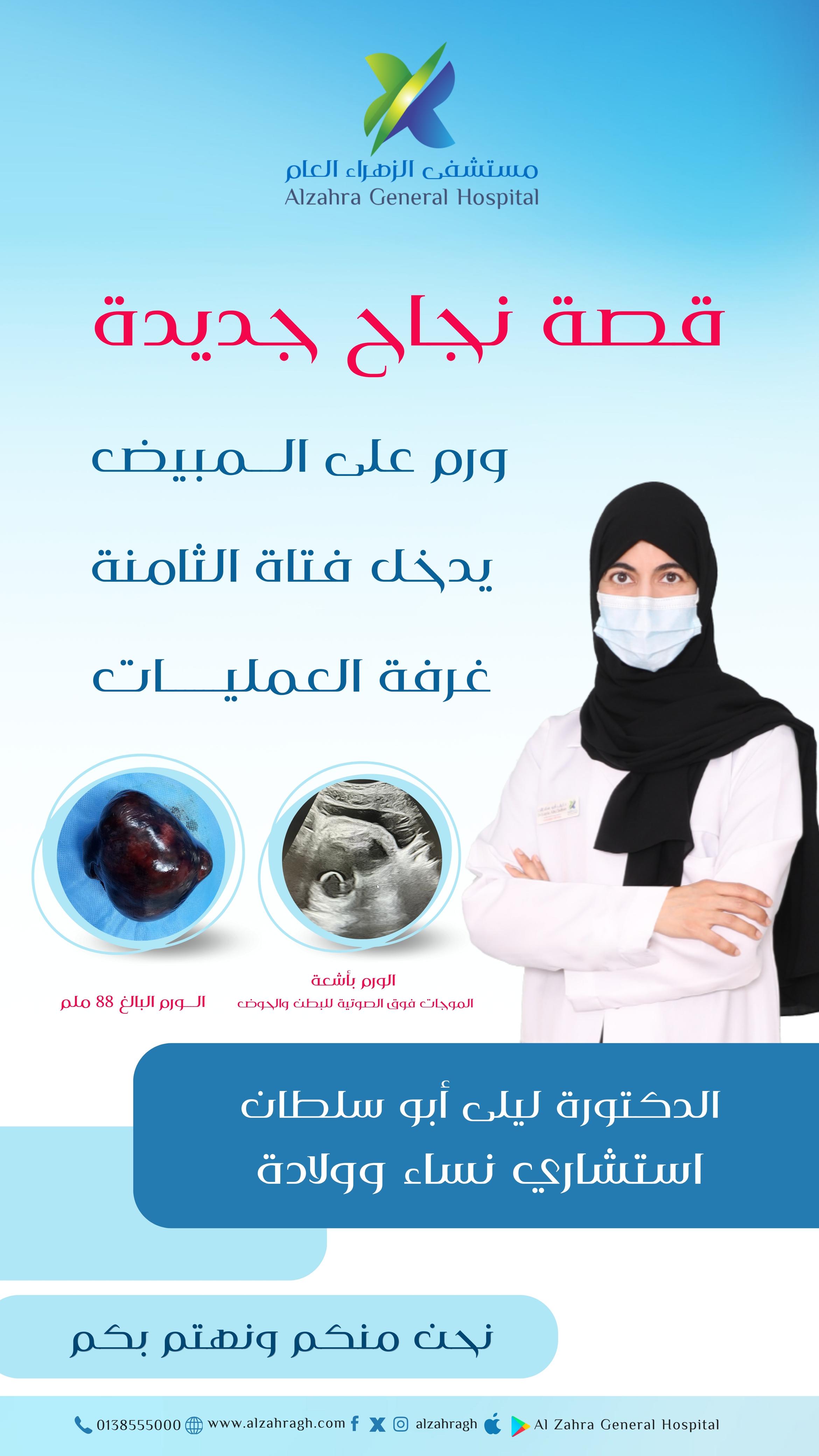 نجح فريق طبي بمستشفى الزهراء العام بالقطيف بقيادة الدكتورة ليلى أبو سلطان استشارية النساء في استئصال ورم من على المبيض يبلغ حجمه 88 ملم لطفلة تبلغ من العمر 8 سنوات في حالة طبية نادرة وغير متوقعة.