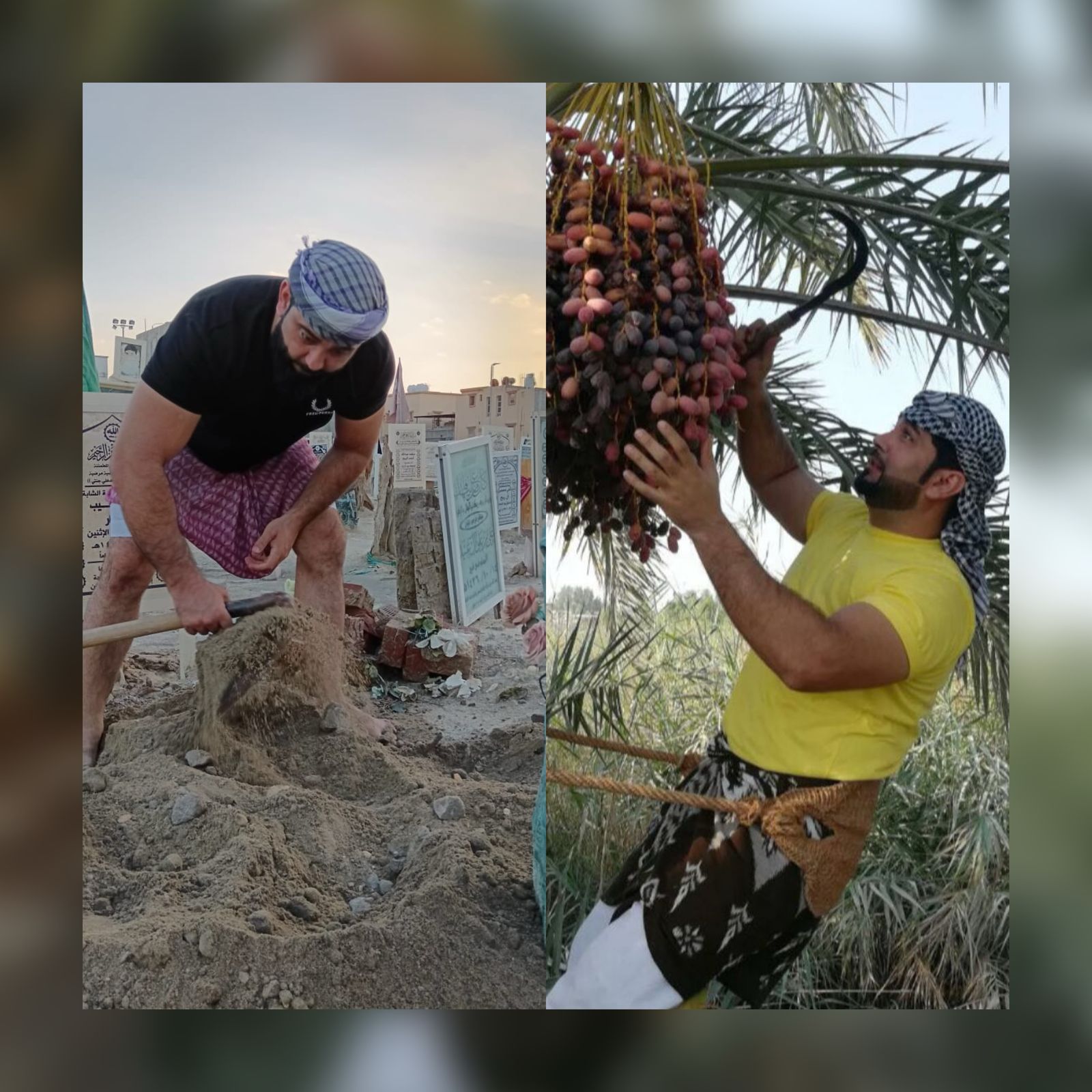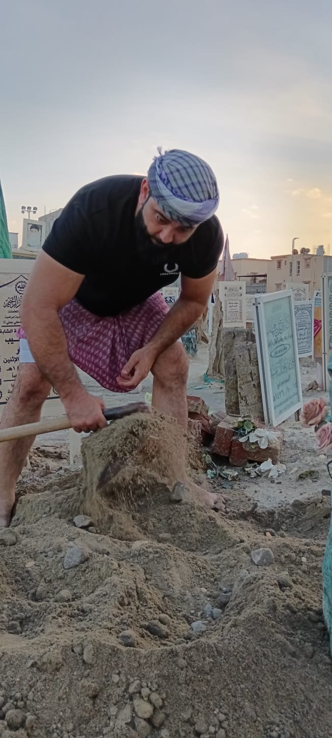 في مشهد يجمع بين التناقض والتكامل، يقف موسى بن حسن بن علي الجبيلي، شاب في الأربعينيات من عمره، بين النخيل الباسقة، يرويها بحب واهتمام كما كان يفعل والده الراحل، قبل أن يرتدي ملابس عمله الأخرى، حيث يمضي جزءًا من يومه في خدمة الموتى وتكريمهم.