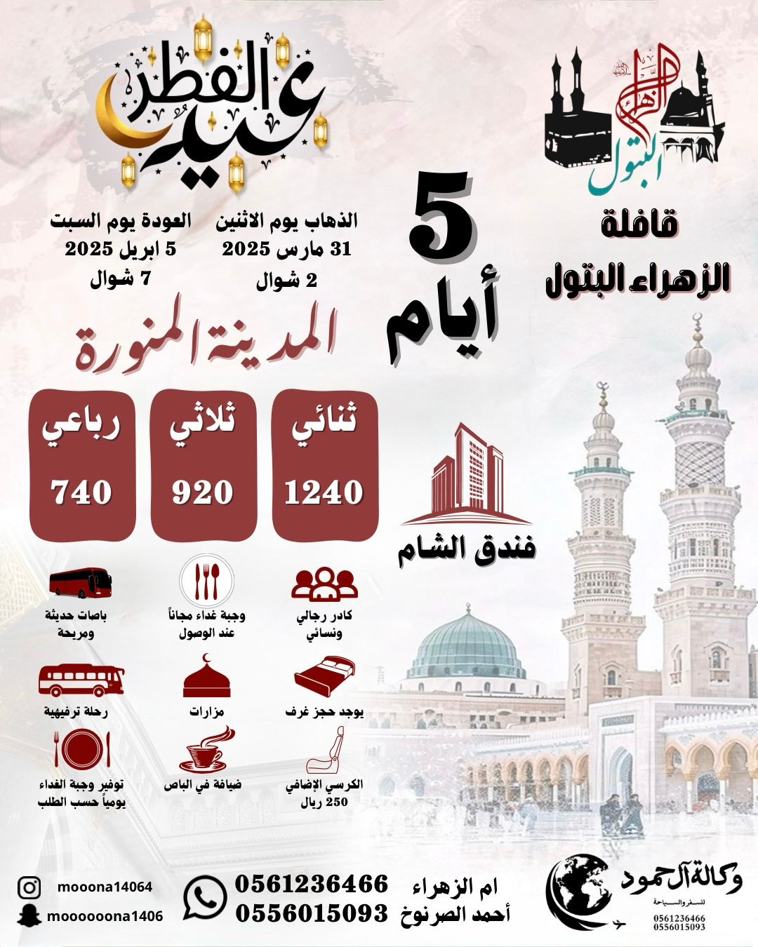 رحلات عيد الفطر المبارك إلى المدينة المنورة مع قافلة الزهراء البتول