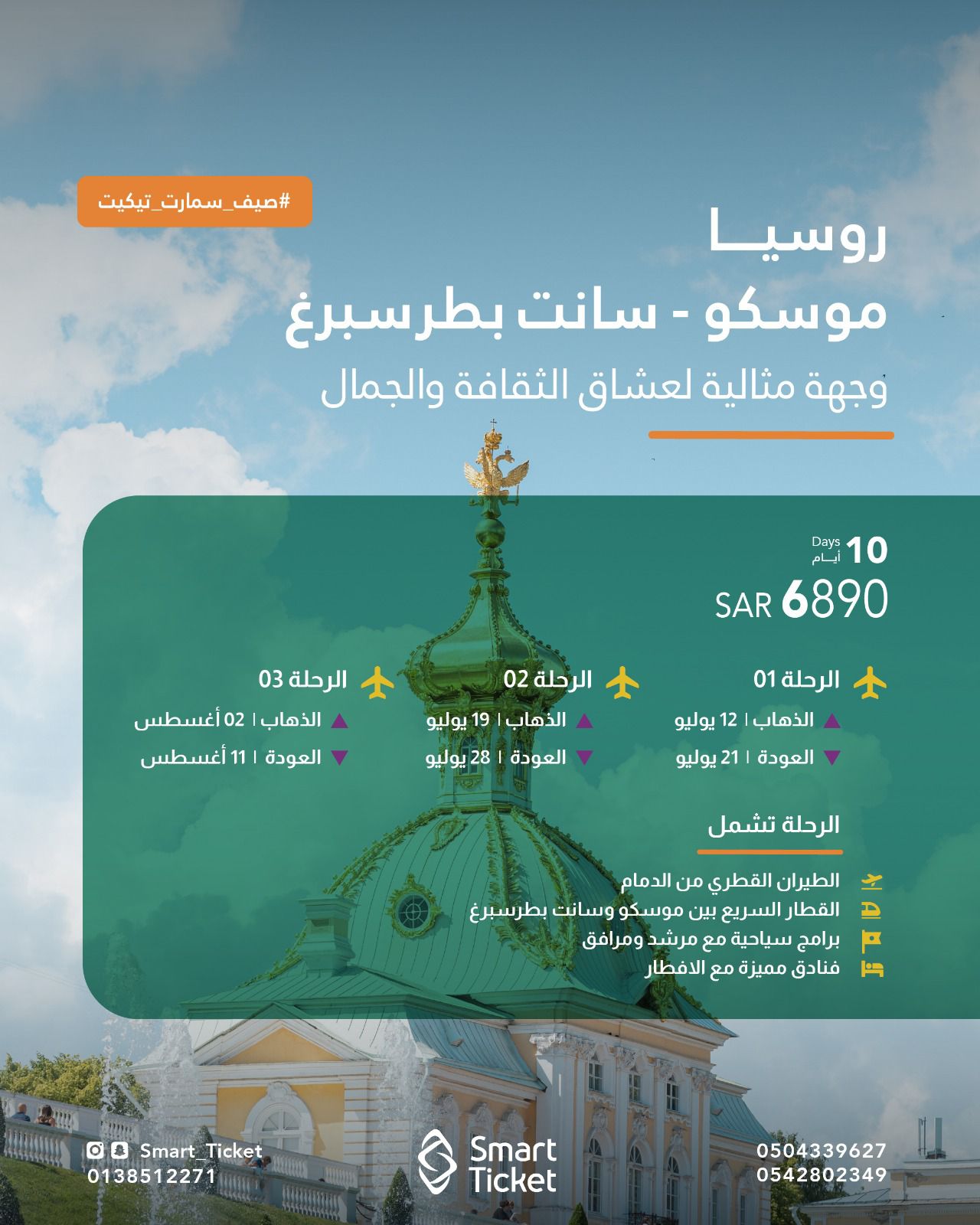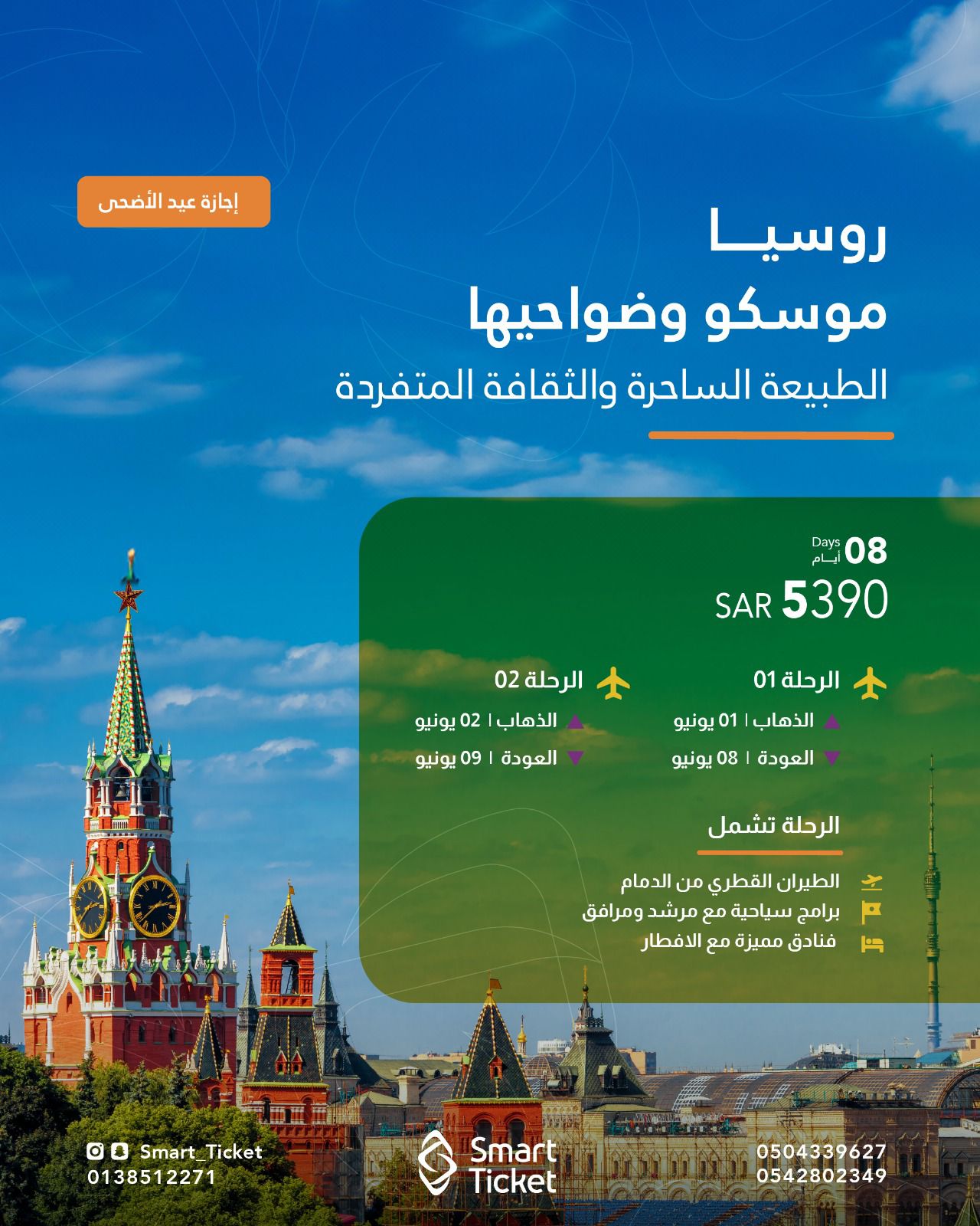 ✈️ رحلات روسيا في عيد الأضحى وصيف 2025 مع سمارت تكت