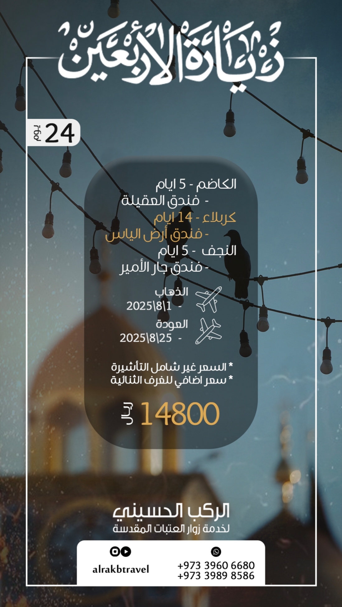 الركب الحسيني لخدمة زوار العتبات المقدسة تسيِّر رحلاتها إلى العراق في شهر صفر