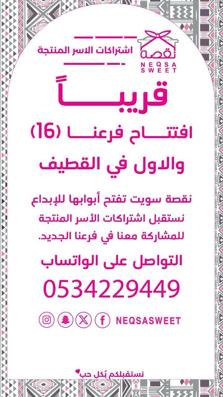 قريبًا.. فرعنا الـ 16 والأول في القطيف يرحّب بالأسر المنتجة المبدعة!