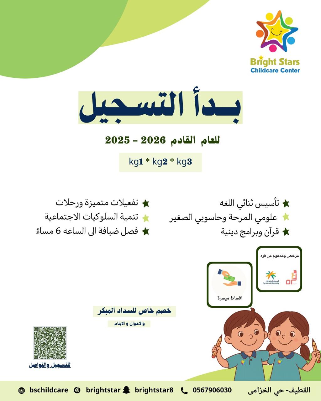 🌟 طفلك يستحق الاهتمام في بيئة محفزة تجعلة نجمٌ ساطع كل يوم !