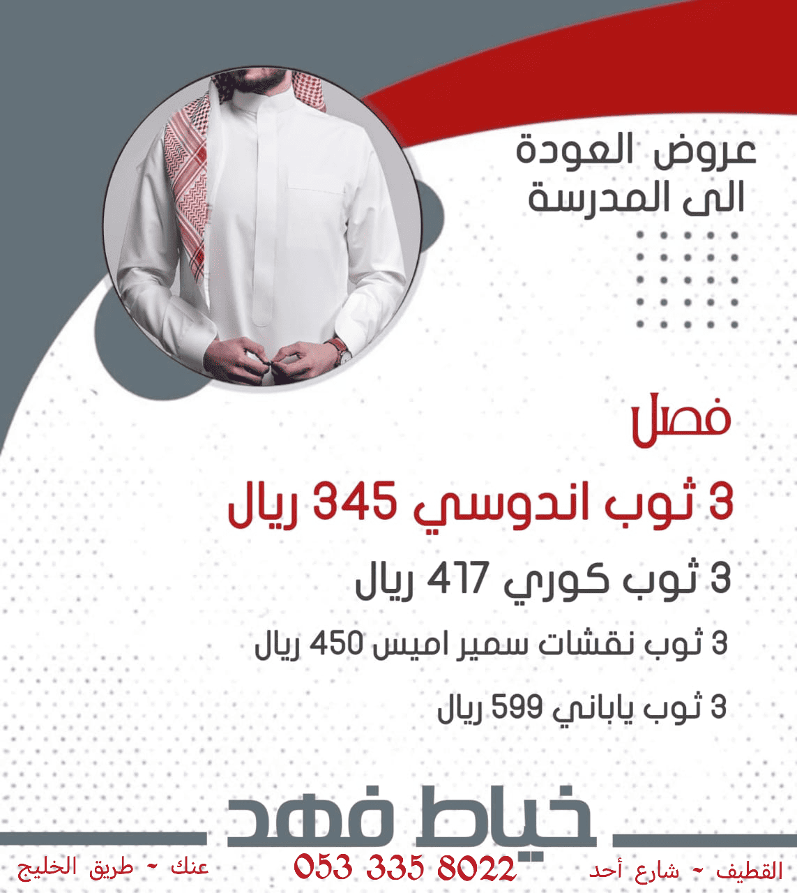 يسر «فهد للخياطة الرجالية» أن يعلن عن جديد عرضه بمناسبة قرب العودة إلى المدارس للعام الدراسي 1447هـ