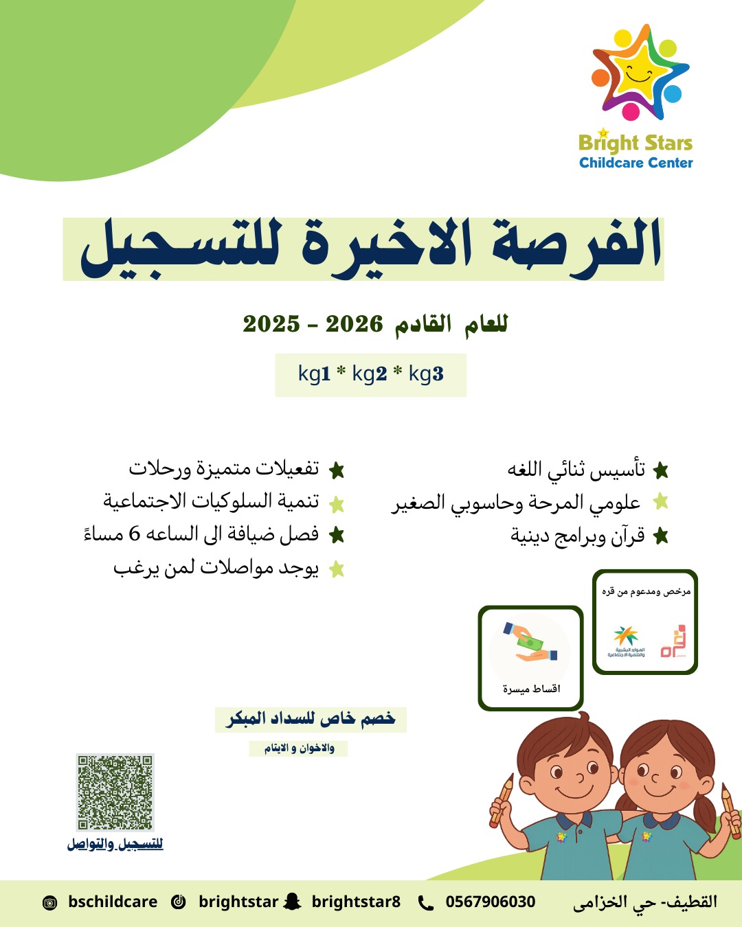 • 📌 مقاعد محدودة لضمان حصول طفلك على الرعاية والاهتمام المستحق