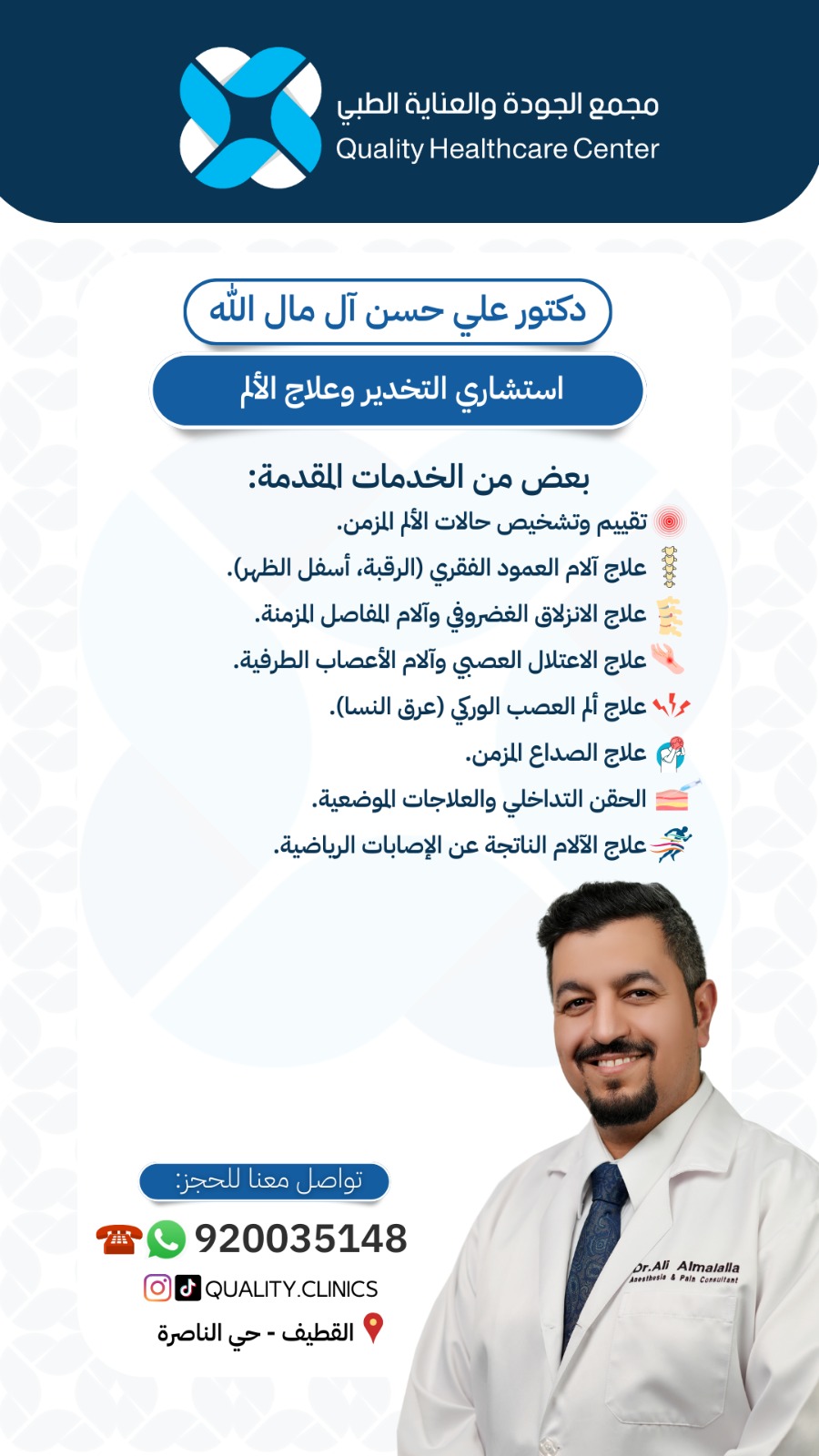 👨🏻⚕️ د. علي حسن آل مال الله – استشاري التخدير وعلاج الألم