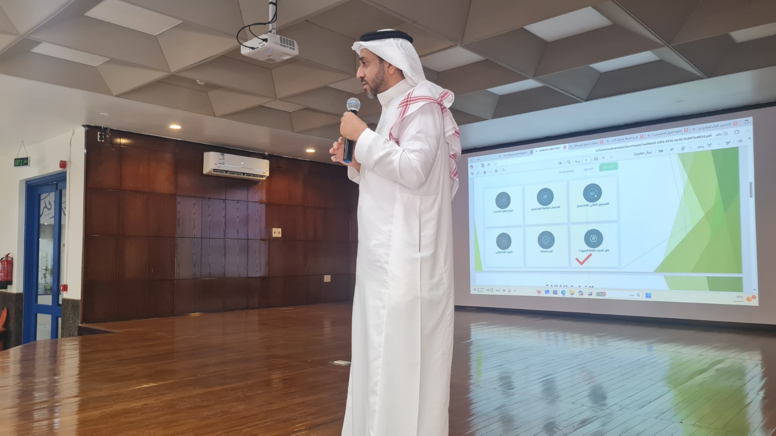 وقام عمار العرفات رئيس قسم تقنية الأعمال بتعريف المتدربين المستجدين على التخصصات وخطط الأقسام ونظام التدرب الذاتي لوجود بعض المقررات التدريبة اعتمد فيها التدريب بهذا النظام الحديث .