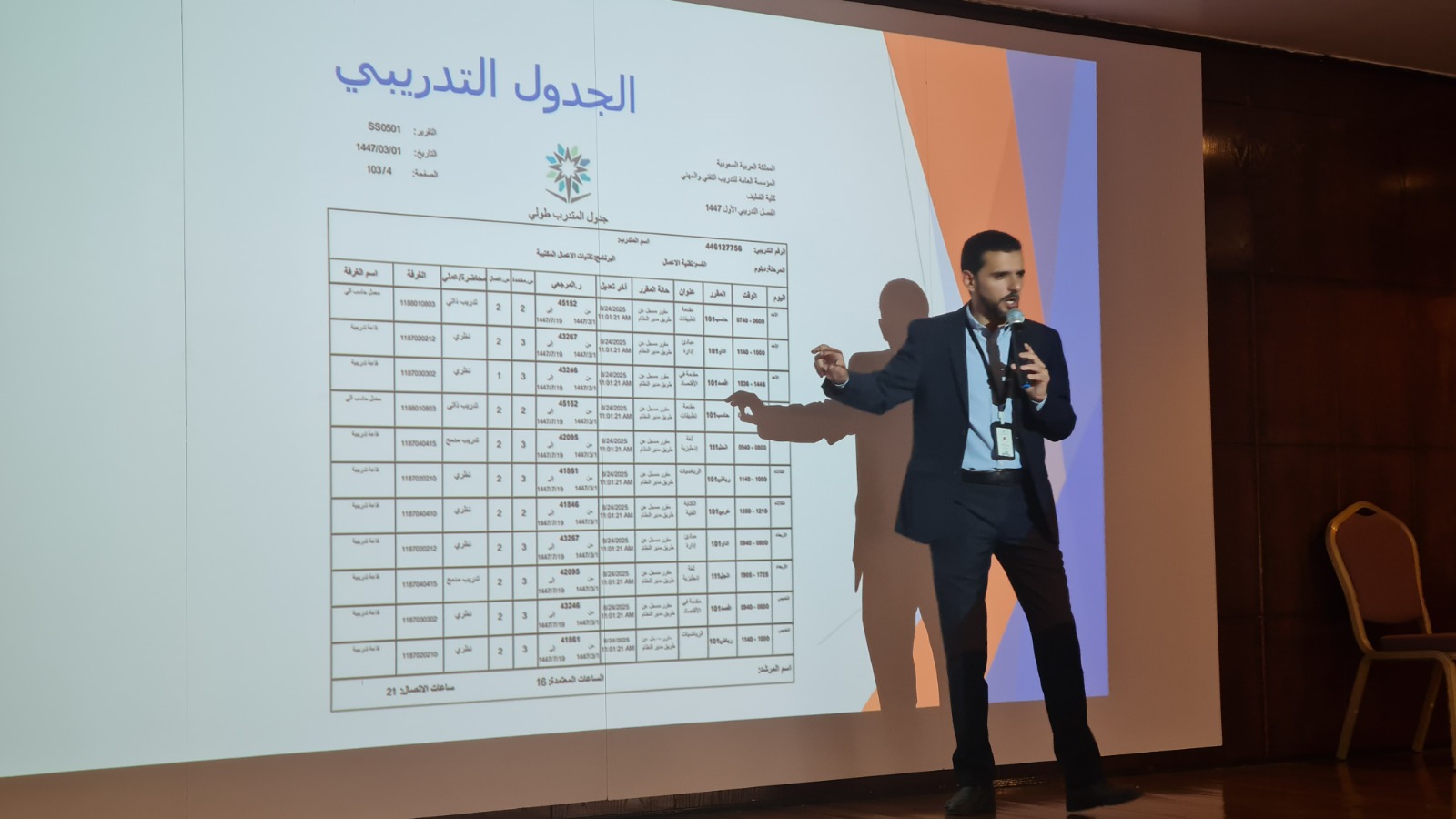 من جانبه قام مدير مركز التدرب الإلكتروني أحمد التاجر بتعريف المتدربين على الخدمات الإلكترونية ومنصة التعلم والتدرب عن بعد BLACKBOARD باعتبارها المنصة المعتمدة والرئيسية المستخدمة في التعلم الإلكتروني في المؤسسة العامة للتدريب التقني والمهني كما تعرفوا على نظام " رايات " الإلكتروني الخاص بكل ما يتعلق بالمتدرب ومسيرته التدريبة.