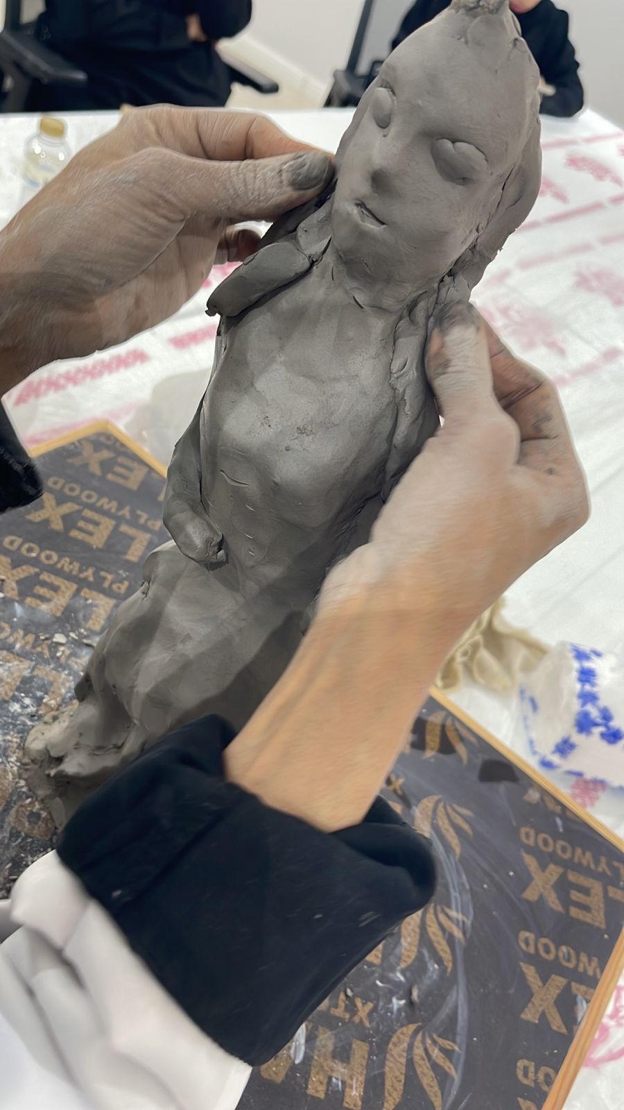 تقدّمت زهراء الضامن، الأكاديمية الكفيفة القادمة من سنابس بمحافظة القطيف، بخطوات واثقة نحو الطاولة، تلمس بين يديها الطين البارد وكأنها تعانق صديقًا قديمًا. لم يكن فقدان البصر عائقًا، بل كان دافعًا لتجعل من أناملها عيونًا، ومن إحساسها بوصلةً تبصر بها العالم وتعيد تشكيله كيفما شاءت روحها.