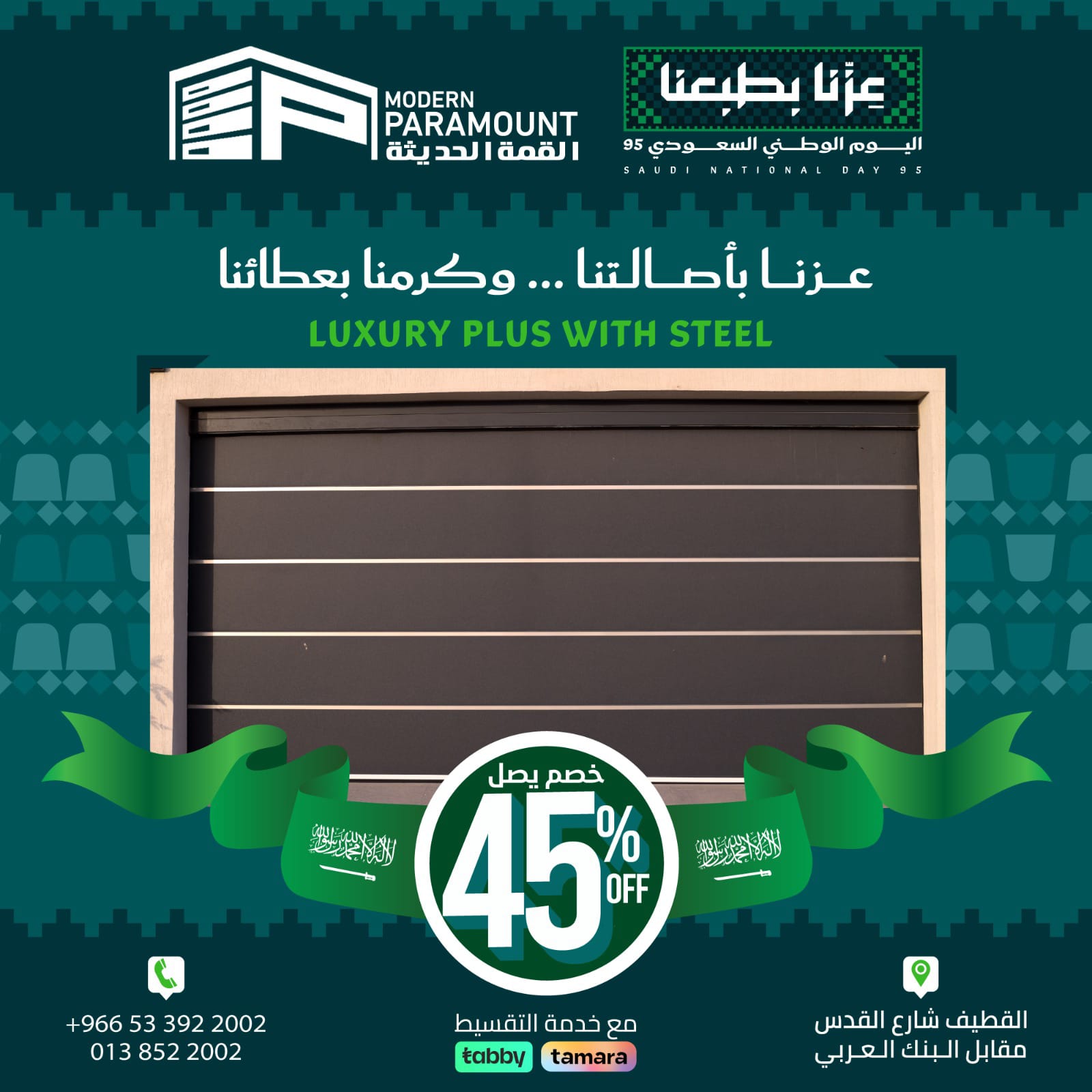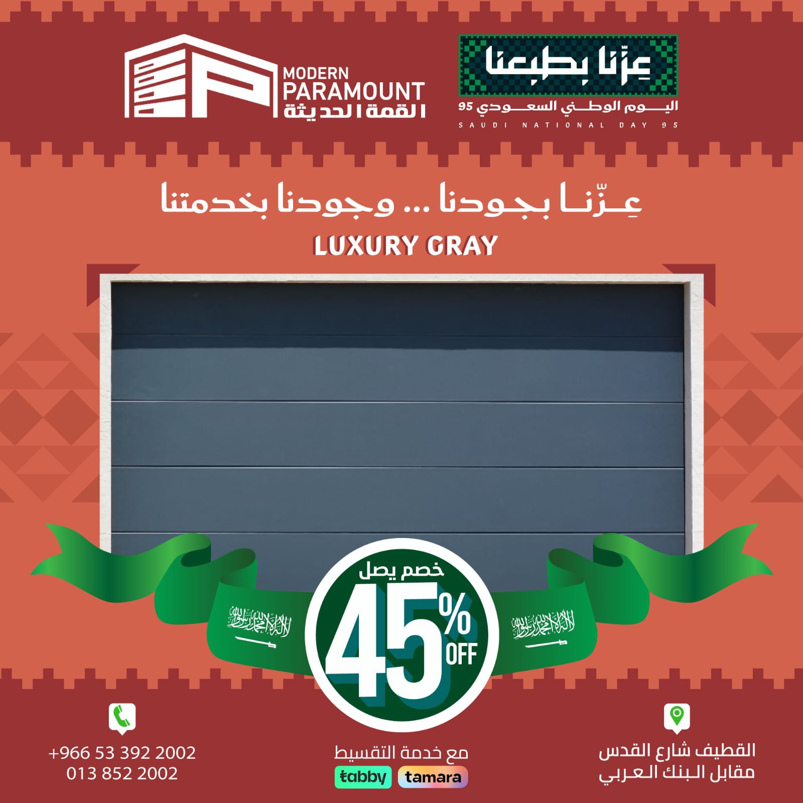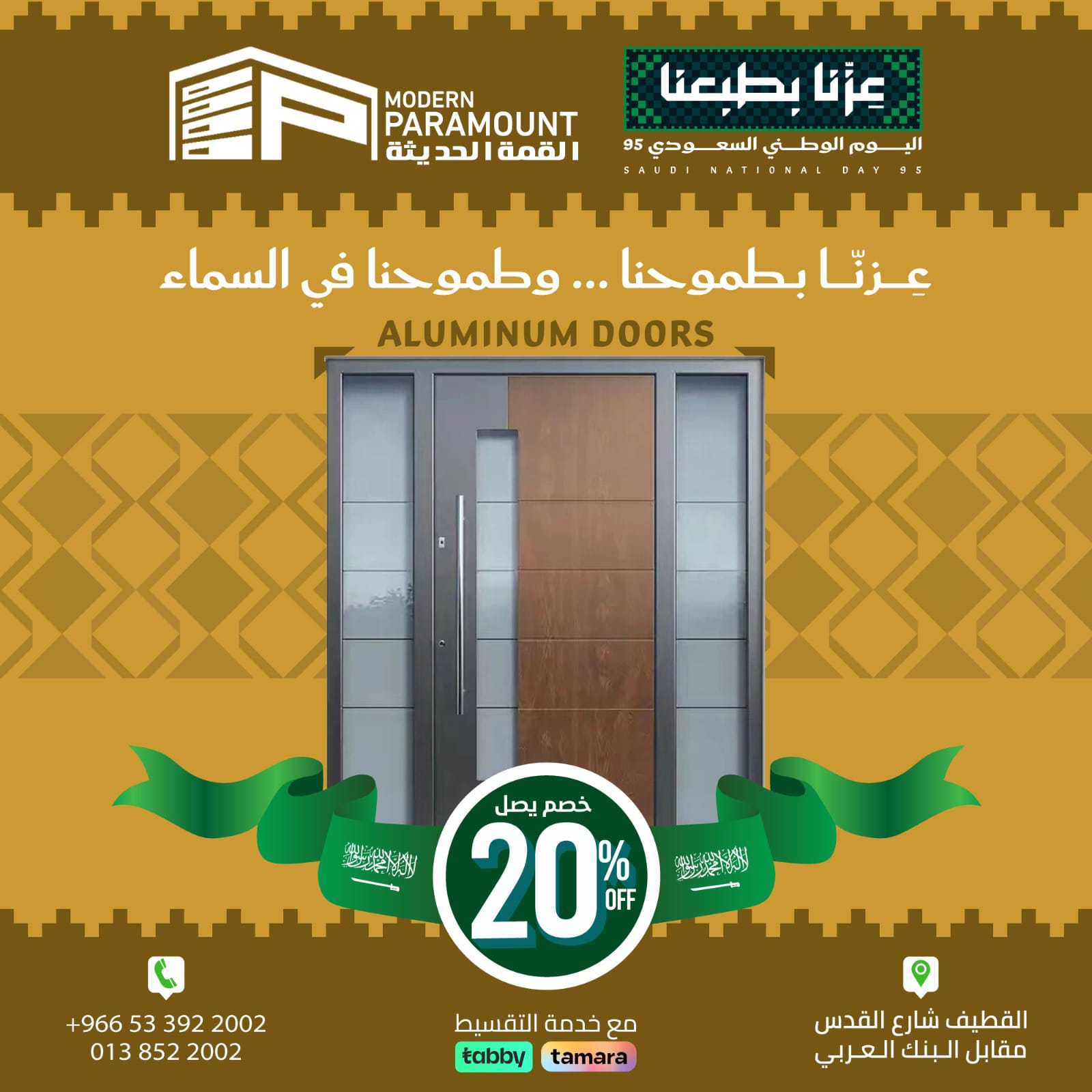 ✔️خدمة التقسيط تابي أو تمارا من «القمة الحديثة للأبواب»..