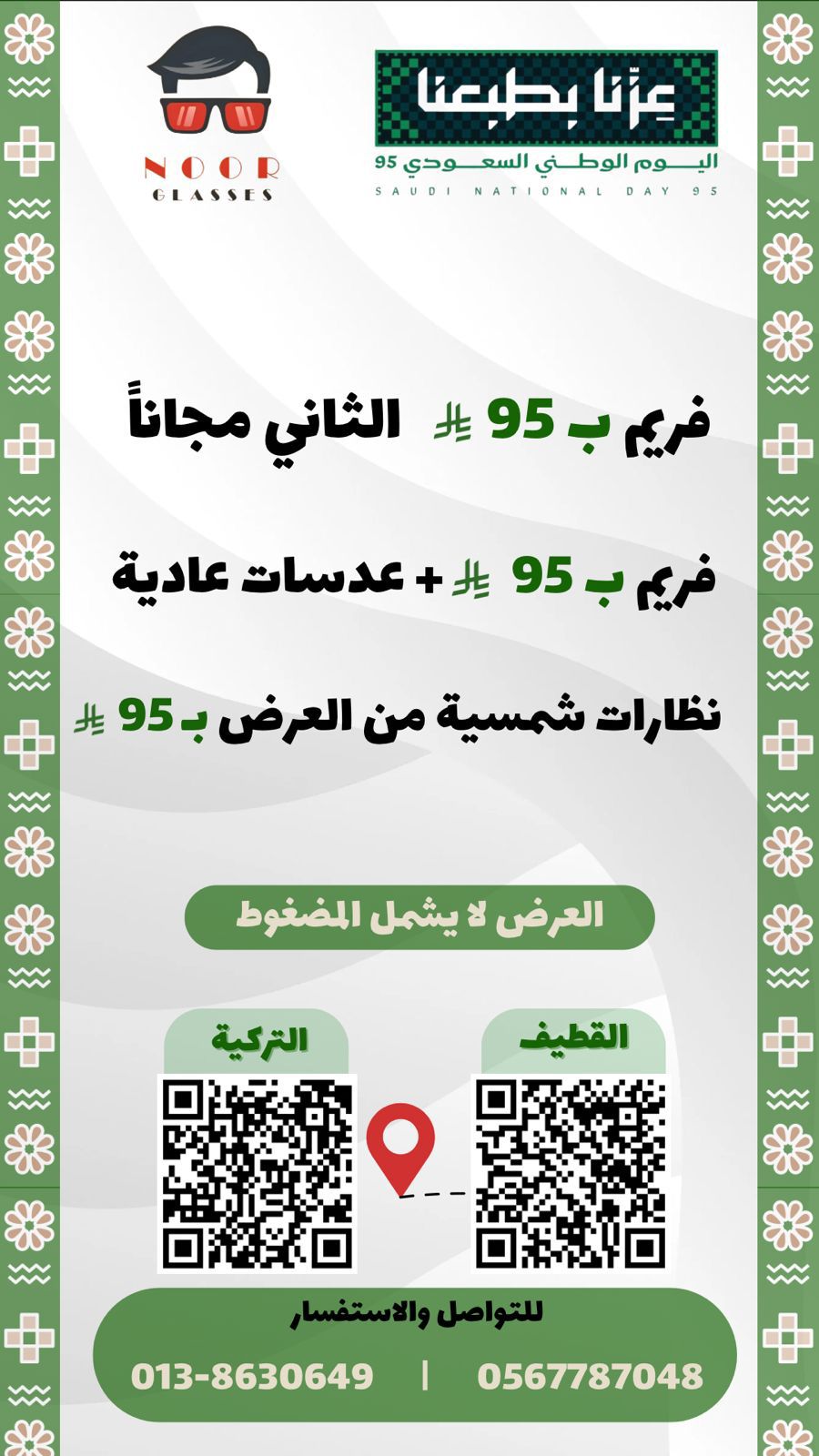 اغتنموا عروض اليوم الوطني لدى نظارات نور بالقطيف