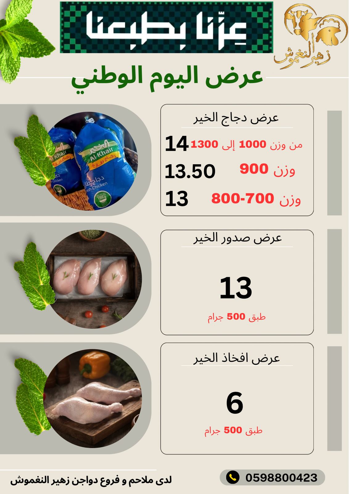 ✔️ العرض يشمل جميع ملاحم زهير النغموش وفروع دواجن النغموش