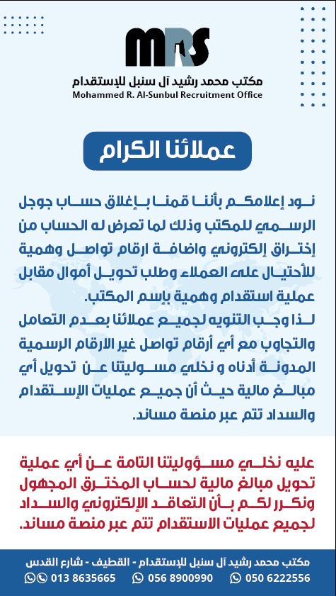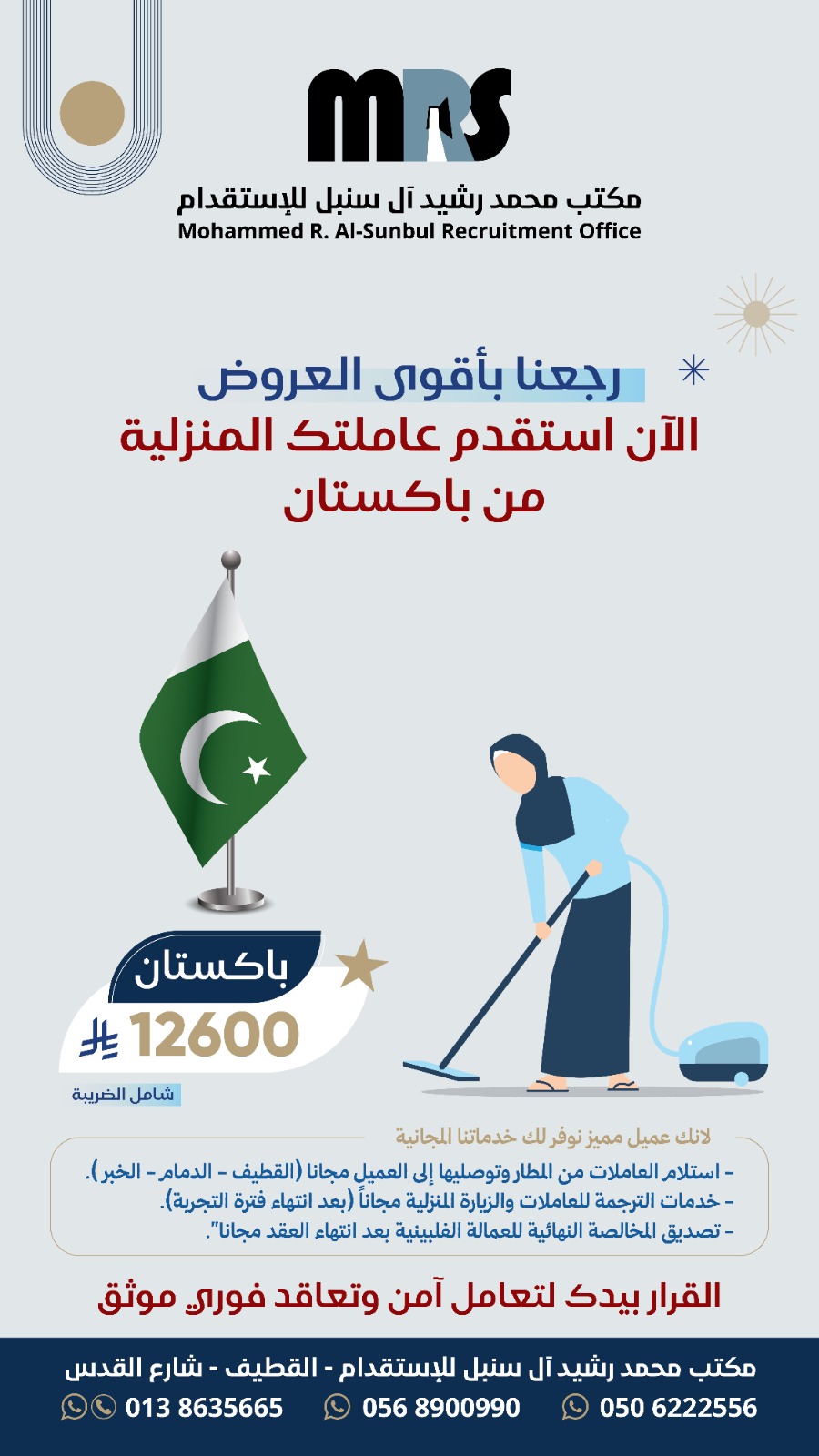 🔥رجعنا لكم بأقوى عروض الجمعة البيضاء.. لدى مكتب محمد رشيد آل سنبل للاستقدام