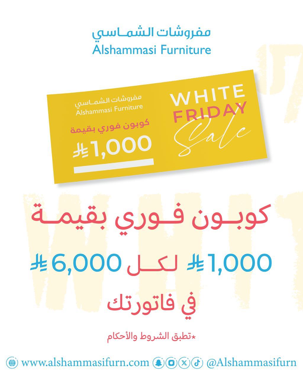 احصل على كوبون بـ 1000 ريال مع مشترياتك لكل 6000 في فاتورتك من «مفروشات الشماسي»