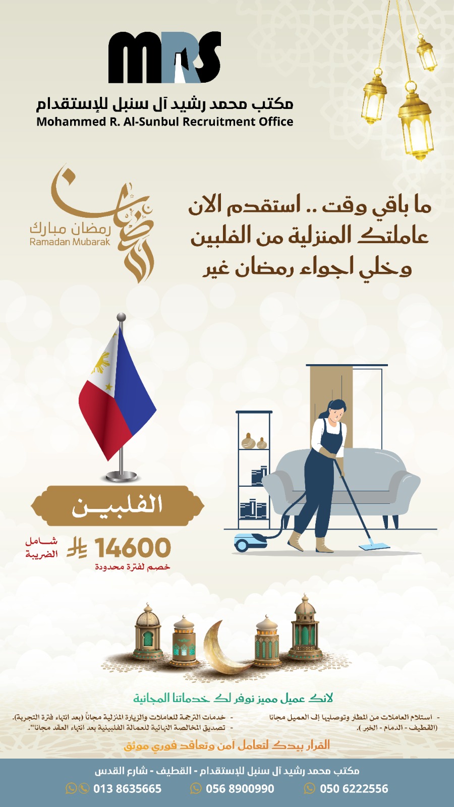 وبمناسبة قرب شهر رمضان المبارك.. مكتب محمد رشيد آل سنبل للاستقدام يمدد عرضه الحصري لمتابعي "القطيف اليوم» فقط