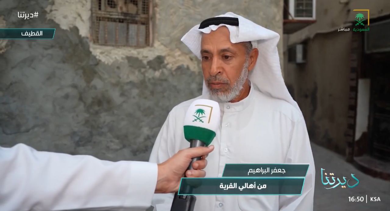 واستعرض المذيع في الاستوديو تعريفًا موجزًا بالقرية، موضحًا أنها تقع على بُعد ميل واحد من مدينة القطيف باتجاه الجنوب الغربي، وكانت في الماضي قريةً مسوّرة تضم ما يقارب مئة وخمسين منزلًا قديمًا بُنيت من الطين والحجر، ولا يزال جزءٌ كبيرٌ من نسيجها العمراني قائمًا حتى الوقت الحاضر.