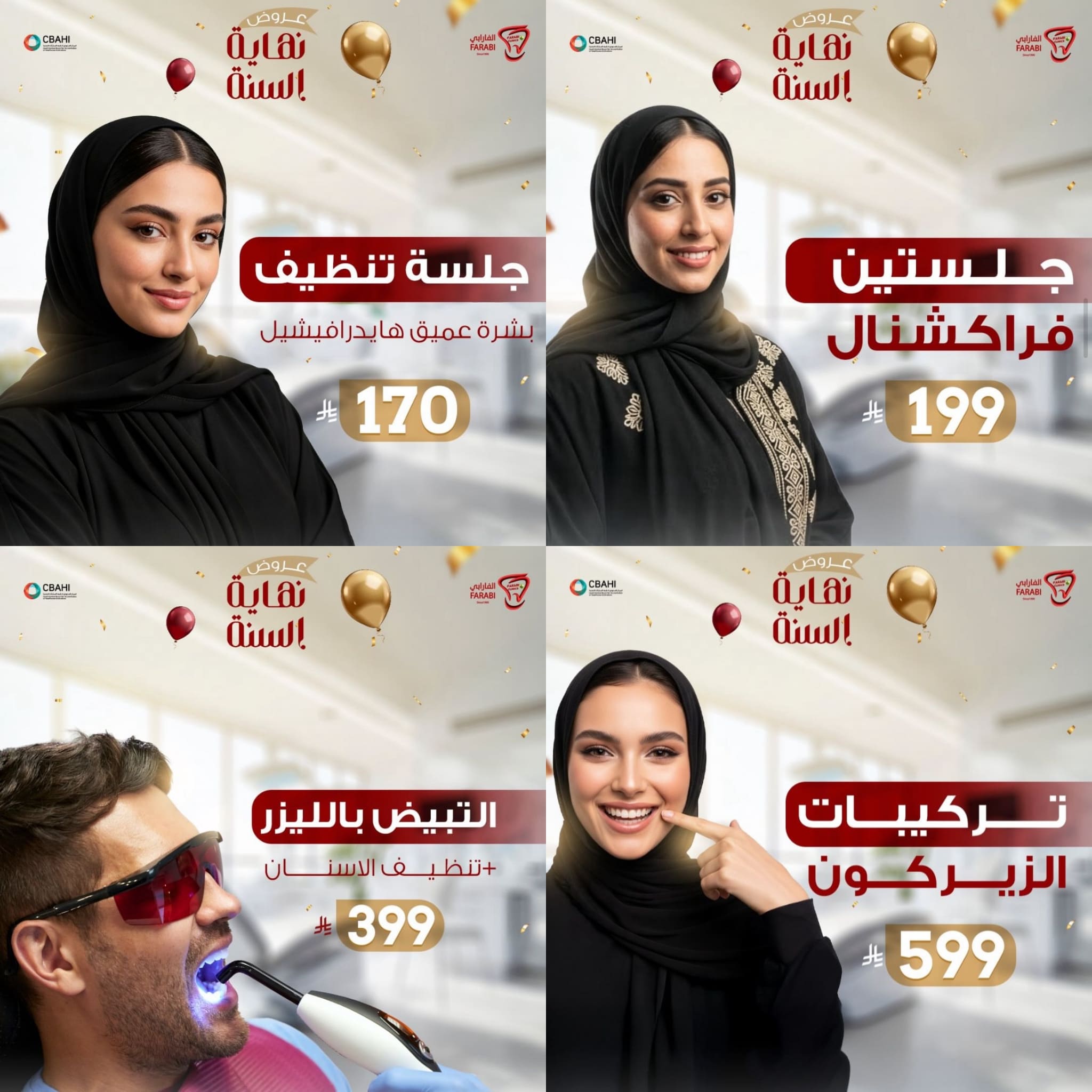 عروض حصرية على كل خدماتنا : الأسنان، زراعة الأسنان ، تقويم الأسنان ،الجلدية، الليزر، والمزيد ❣️