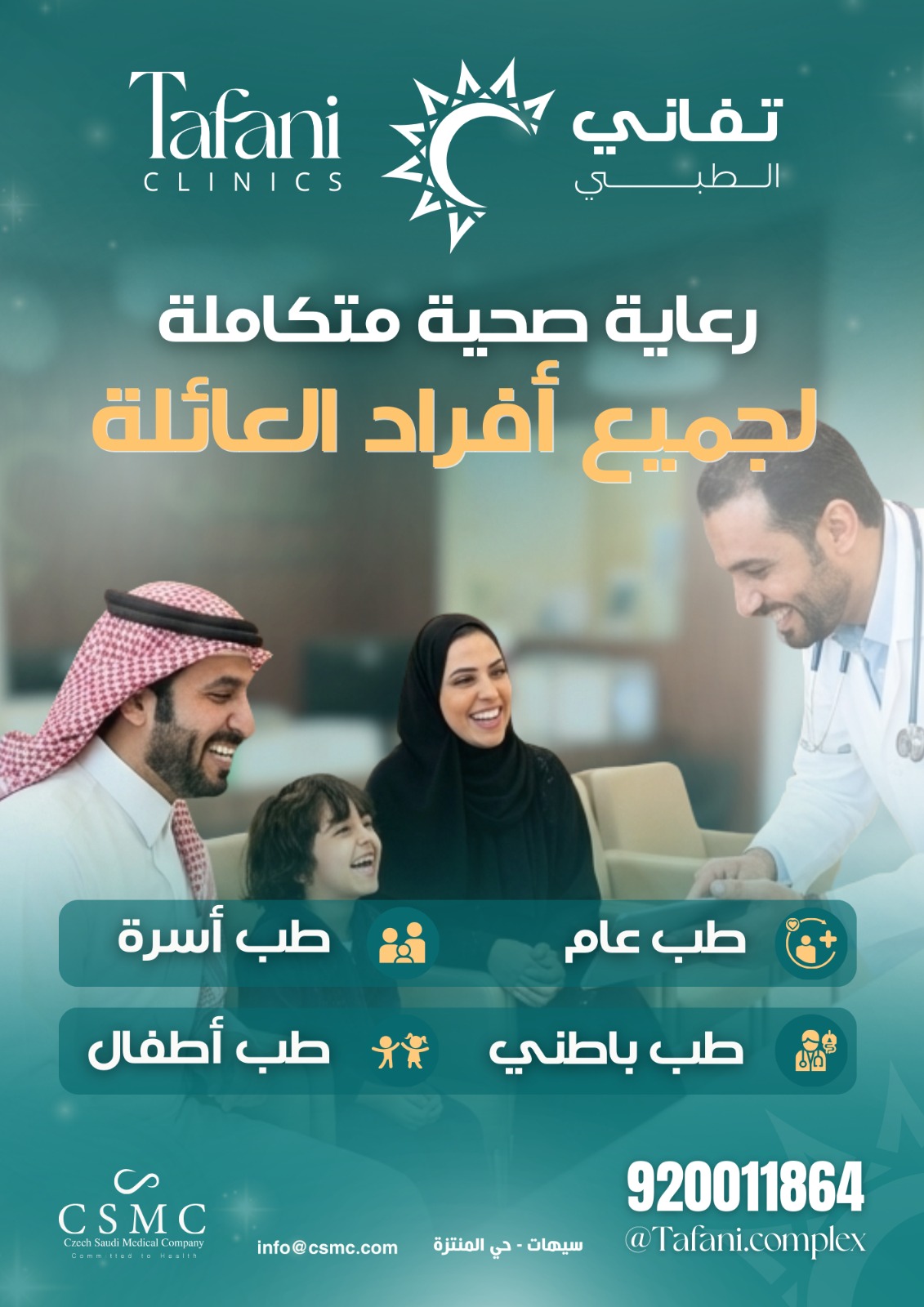 في مجمع تفاني الطبي نقدم لكم رعاية صحية متكاملة لجميع أفراد العائلة، عبر مجموعة من العيادات التخصصية التي تهتم بصحتكم من البداية حتى الوقاية والعلاج. ☀️🌻