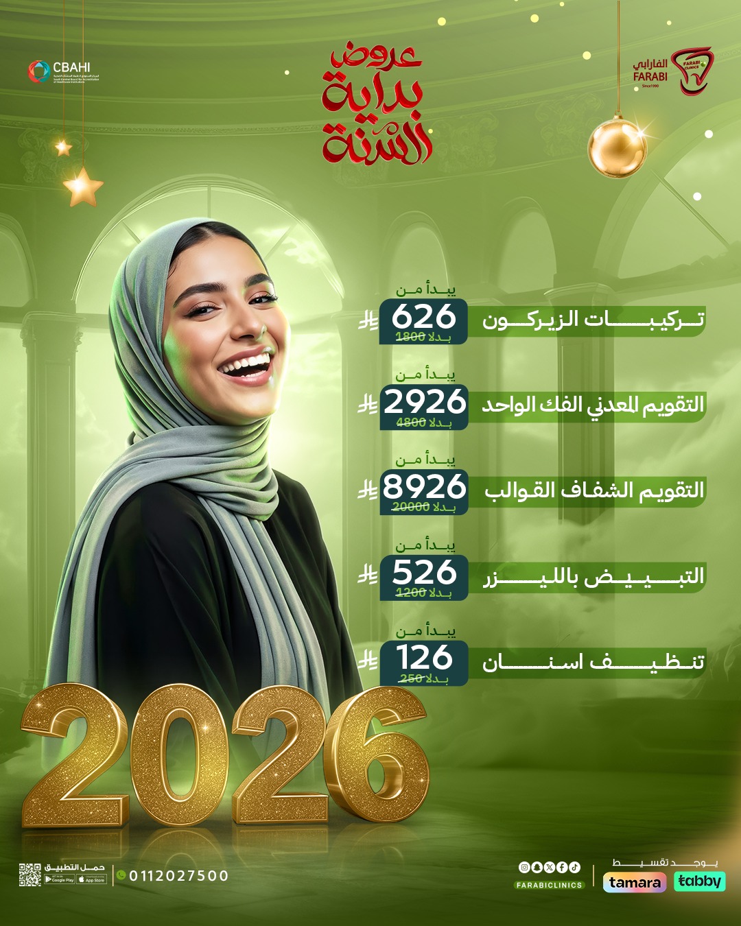 عروض السنة الجديدة 2026 في عيادات الفارابي! 😍
