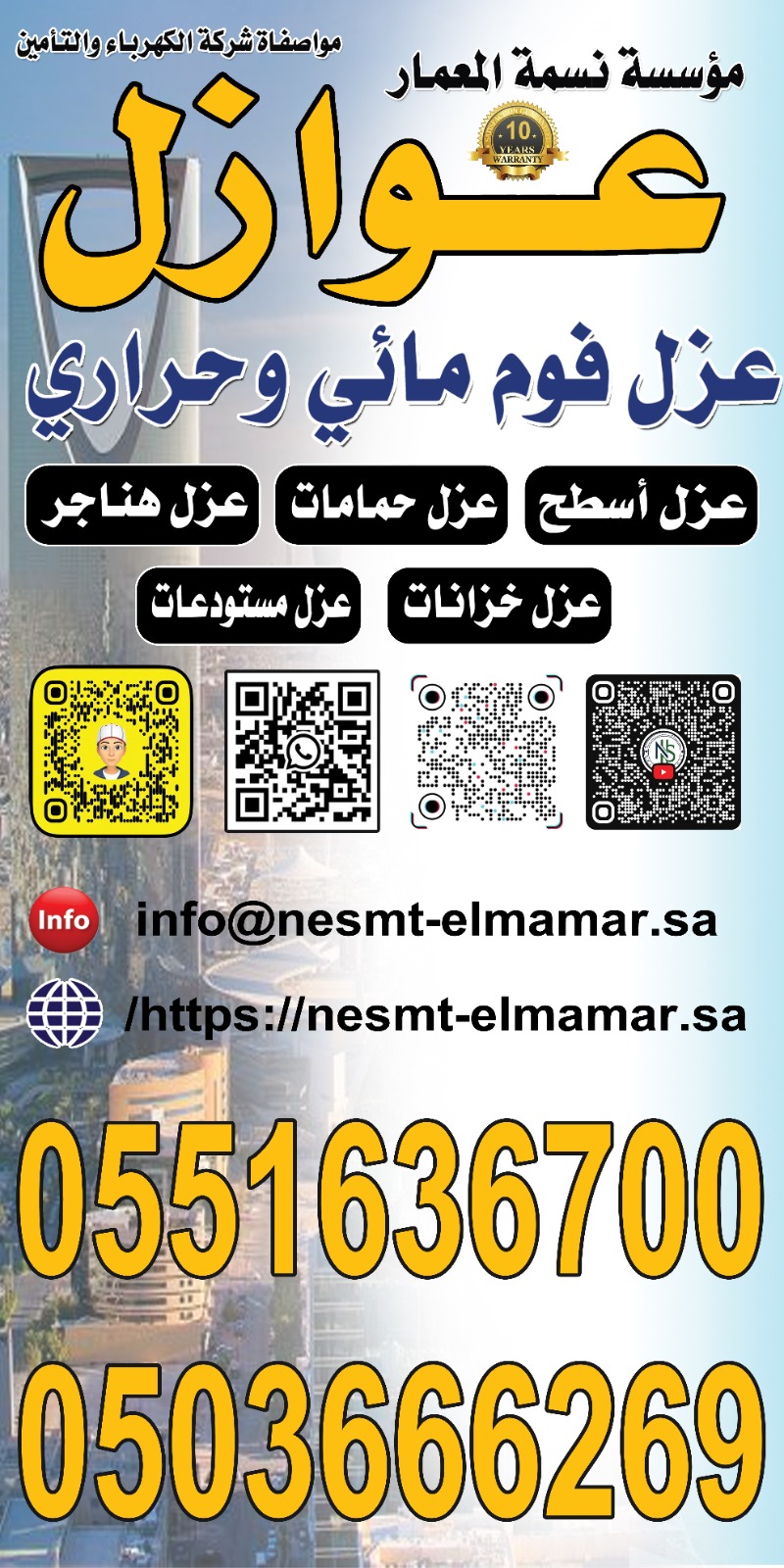 شركة نسمة المعمار هي الشركة الرائدة في مجال العزل للأسطح الخرسانية والمعدنية والمباني والمنشآت الجديدة والمستودعات الشينكو والأسطح الزنك بضمان على الخدمة عشرة سنوات بتقديم خدمات عالية الجودة ومتخصصة في عزل الأسطح بأحدث التقنيات.