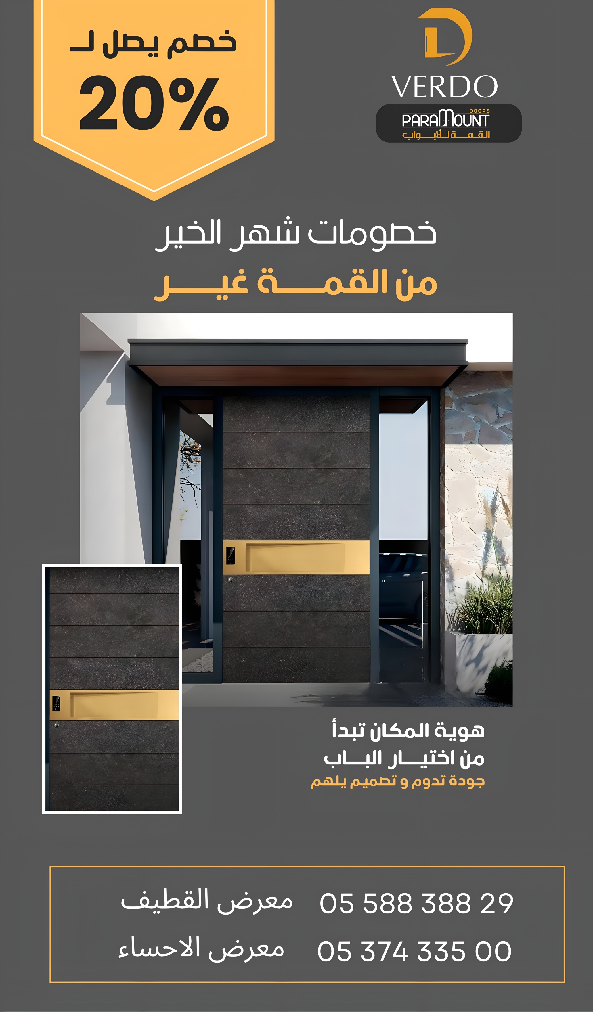 لأول مرة في المنطقة الشرقية.. «القمة للأبواب» تطلق علامتها التجارية Verdo بخصومات 20%