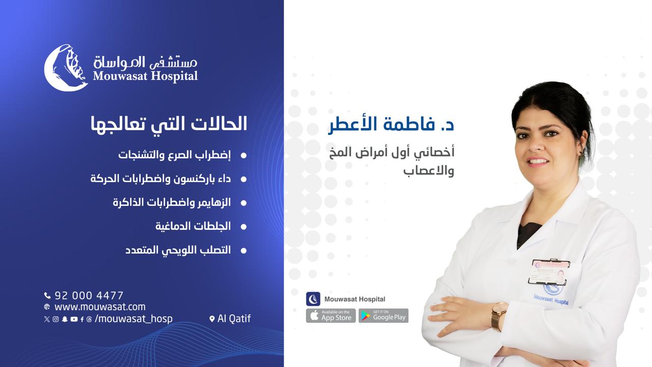 الدكتورة فاطمة الأعطر أخصائي أول أمراض المخ والأعصاب