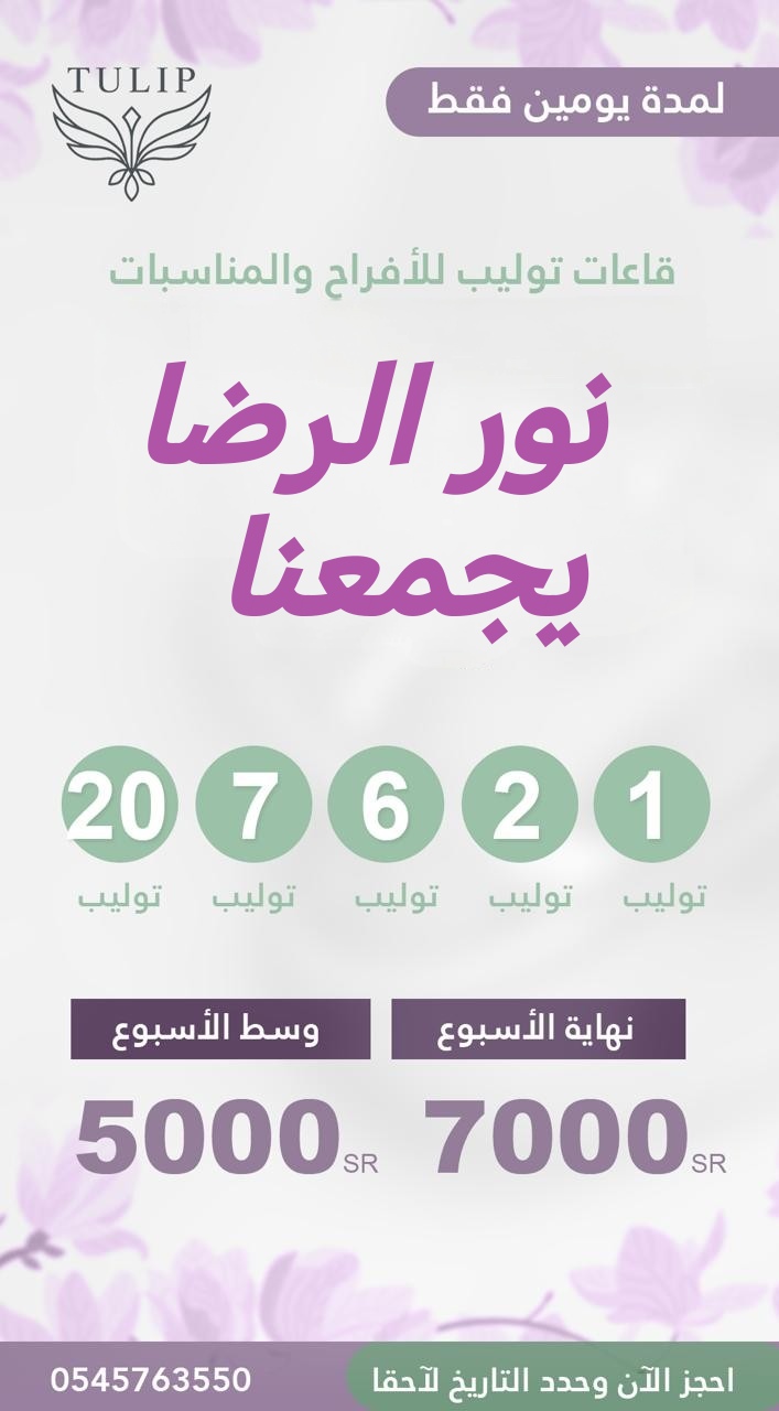 للحجز والاستفسار - قاعات توليب والضيافة :