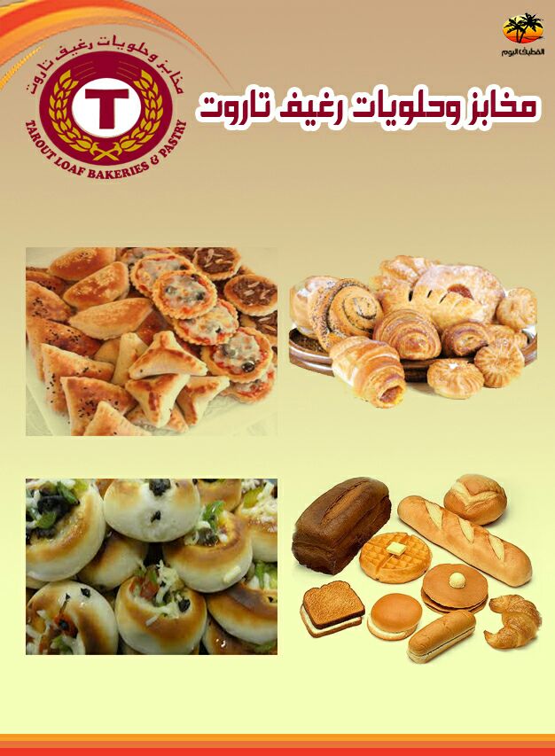تعلن "مخابز وحلويات رغيف تاروت" لعملائها الكرام عن خصومات تصل الى 50% بمناسبة انتقال فرع القديح لمقره الجديد بجوار مجمع جمعية مضر الطبي ، وذلك لمدة 5 أيام بدءا من 11 ابريل 2018 الموافق 25 رجب 1439هـ