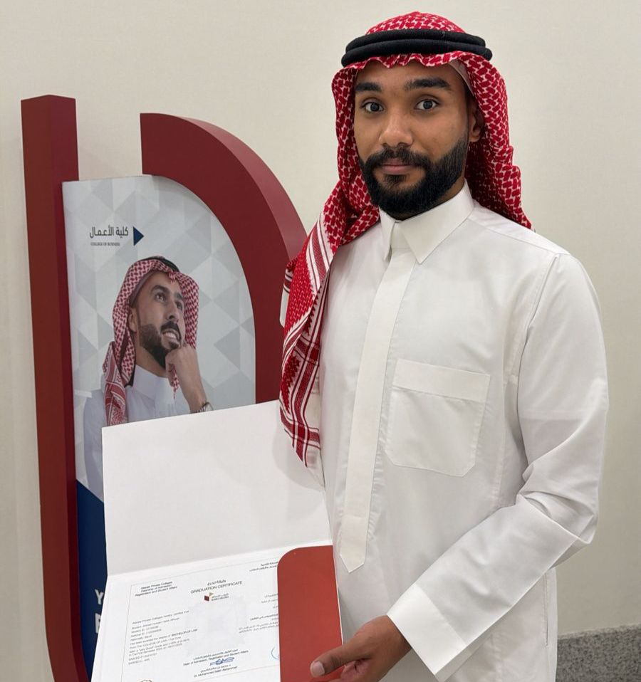 من البحاري.. جامعة الأصالة تمنح «أحمد آل أرقية» البكالوريوس في القانون